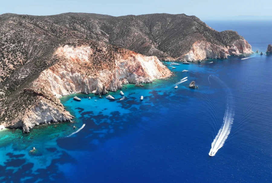 Located close to Milos, Polyaigos is an uninhabited island celebrated for its strikingly turquoise waters and untouched natural beauty. Typically visited by boat on a day trip, it offers a sense of exclusivity and serenity that is difficult to find elsewhere. Many travelers compare its luminous blue coves to the Caribbean, making it a must-see for lovers of pristine seascapes.