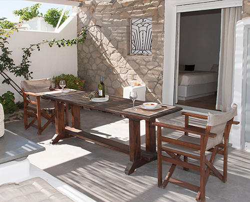 Progettata esclusivamente per momenti indimenticabili, la suite di 40 m² al primo piano è per un massimo di 3 persone, dispone di una elegante camera da letto minimalista, di un lussuoso bagno in stile cicladico e di un piccolo soggiorno che può ospitare una persona su un divano letto da incasso e una terrazza privata dove trascorrere momenti spensierati